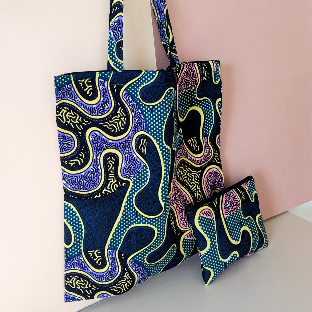 ※ポーチはナイロン裏地付、トートバッグは裏地なし(重いものには向きませんが、折りたたんで持ち歩けるコンパクト感)