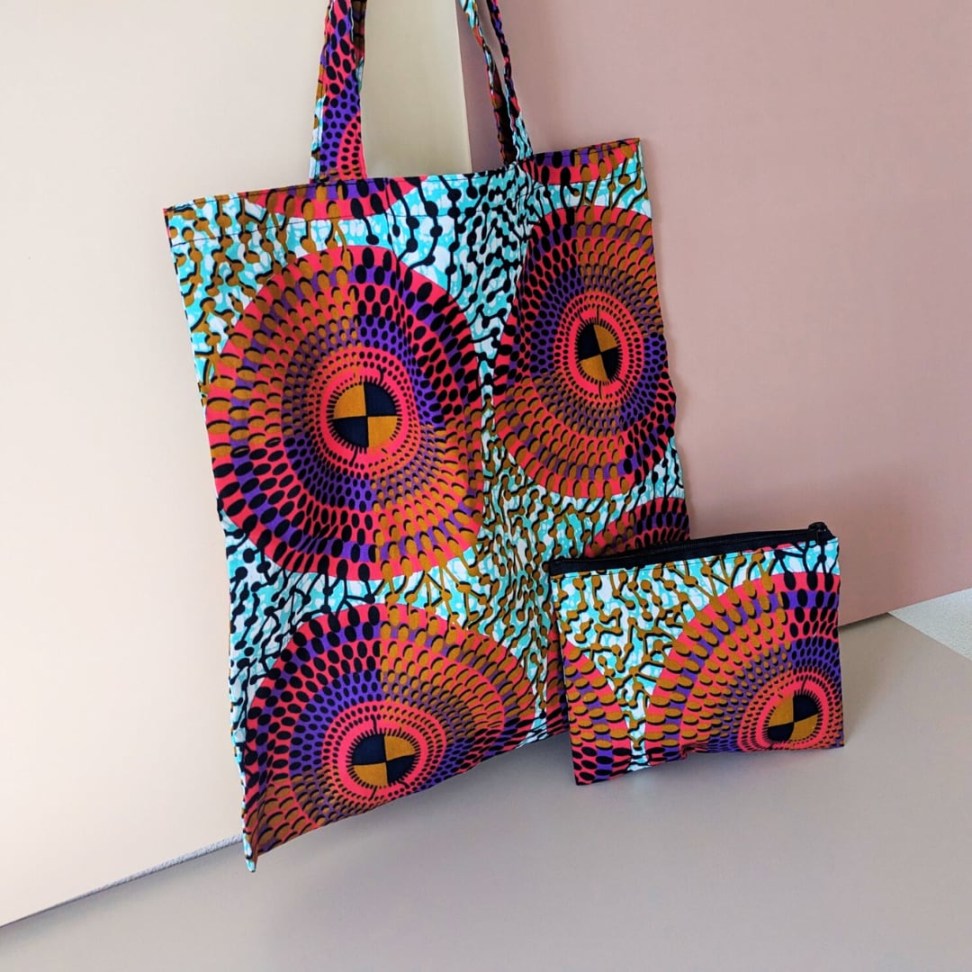 ※ポーチはナイロン裏地付、トートバッグは裏地なし(重いものには向きませんが、折りたたんで持ち歩けるコンパクト感)